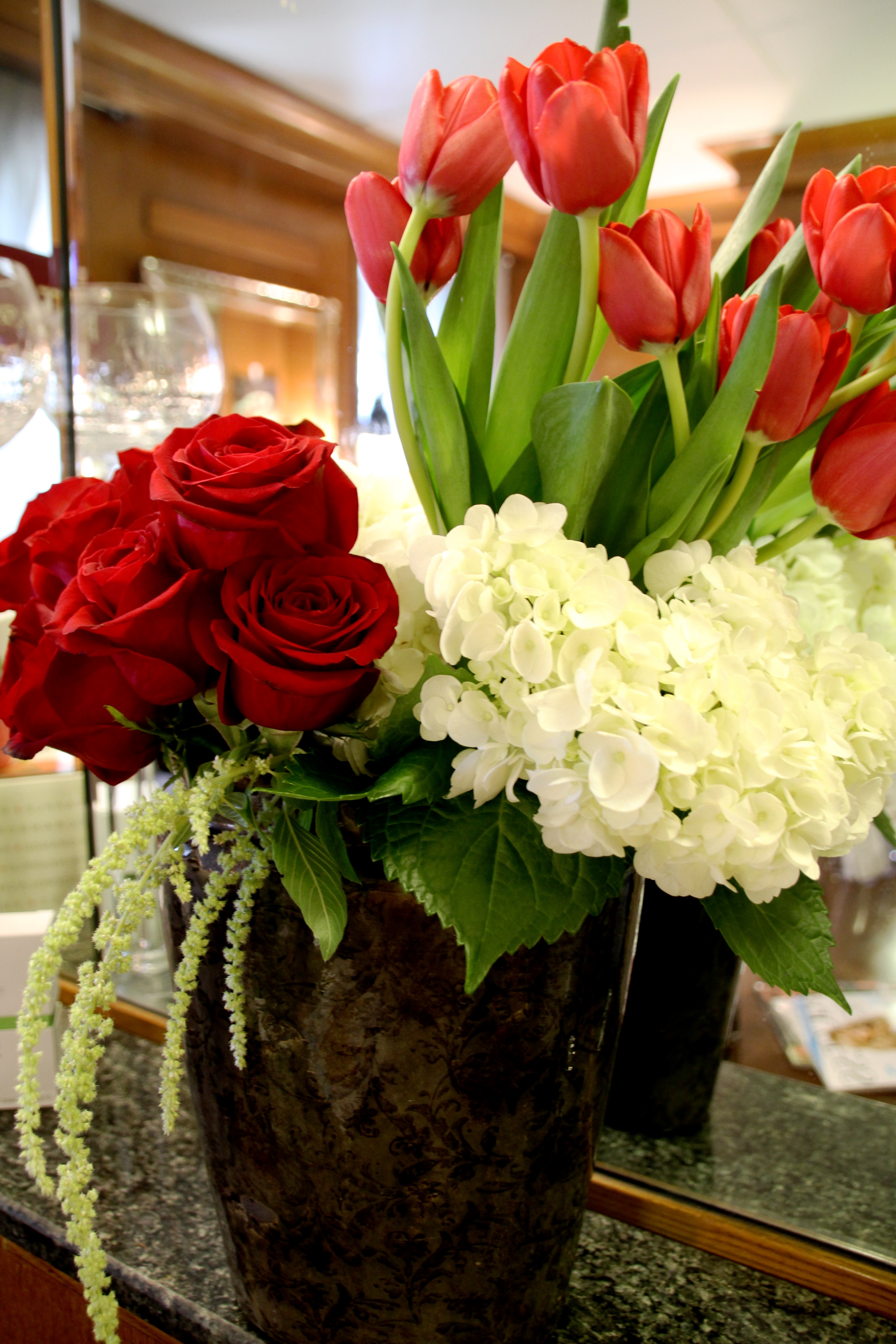 137 Published May 4, 2016 at 3456 × 5184 Red and White Delight featuriing Tulips, Roses, White Hydrangea