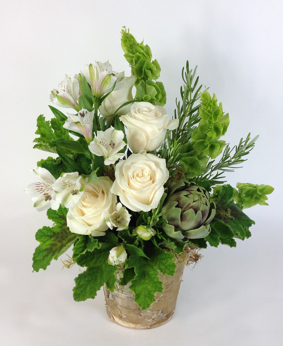 alberta gift (1)e Published July 13, 2014 at 2180 × 2668 Rustick Bouquet of Ivory Roses, Alstromeria, Bells of Ireland and Artichoke
