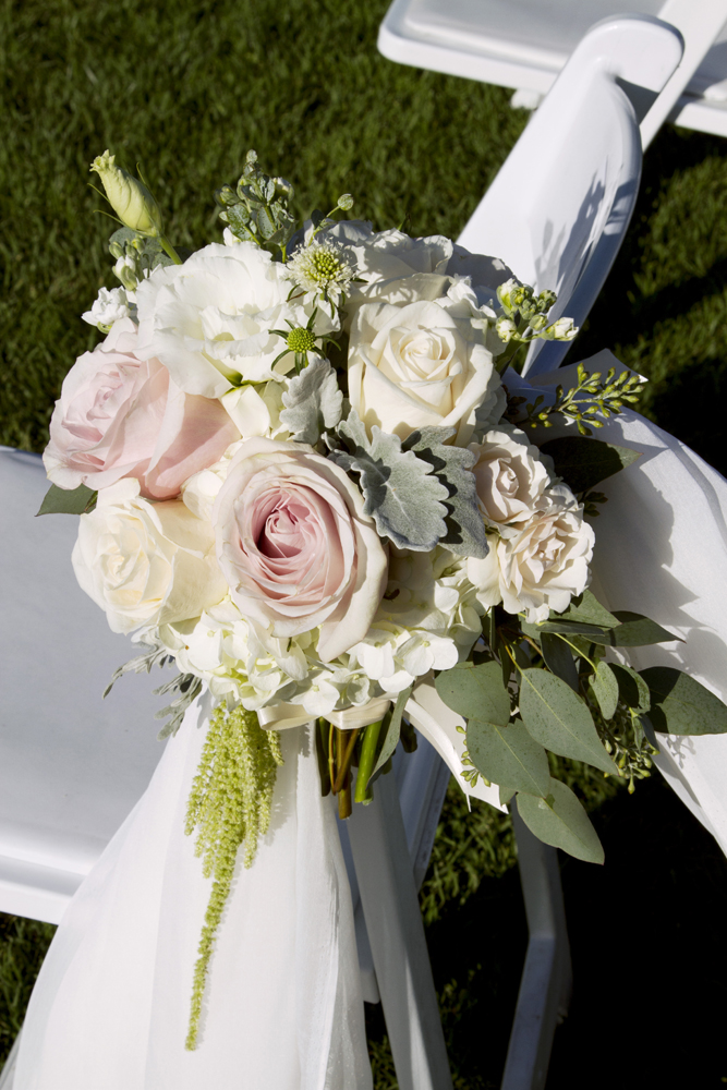Soft Pink and White Aisle Chair bouquet