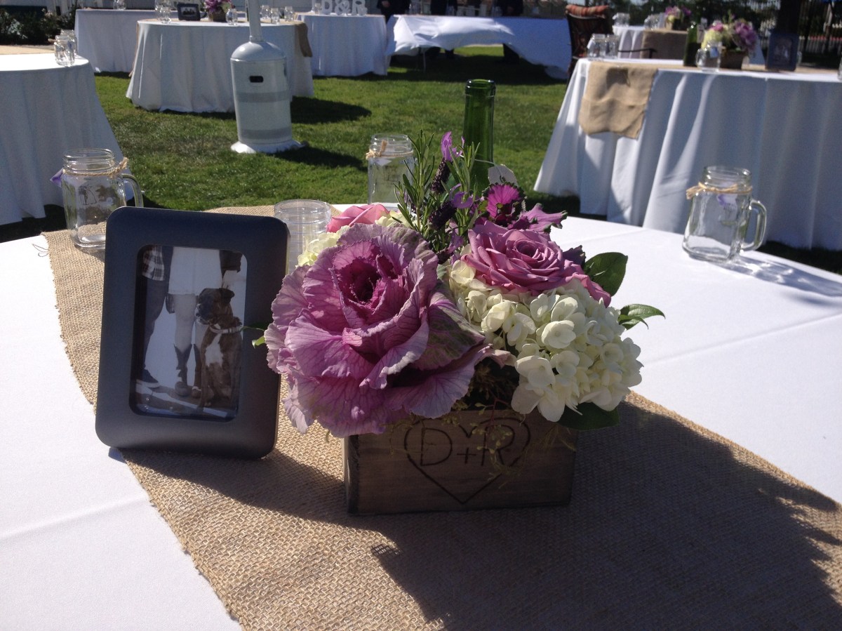 photo 2 (2) Published March 27, 2015 at 3264 × 2448 Rustic Centerpiece with Kale, Hydrandea, Roses, and Lavendar and Rosemary accents