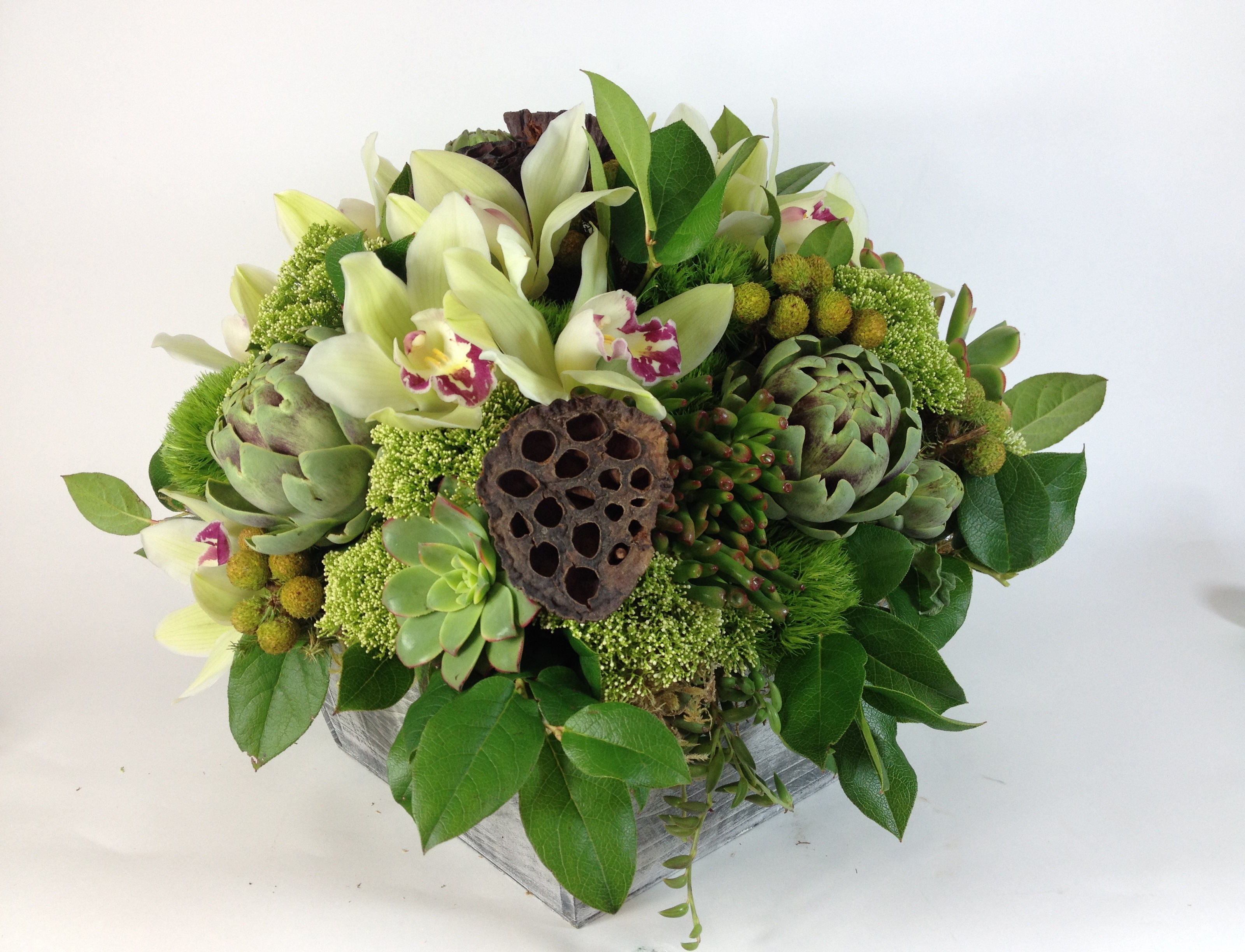 succulent and orchid basket[2] Published June 18, 2014 at 3200 × 2448 Orchid, Artichoke, and Succulent Centerpiece